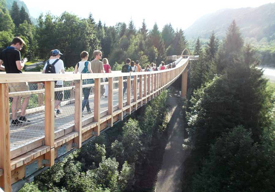 Zwischen Ziegelwies in Füssen und Pinswang verbinden die Naturerlebnispfade Tirol und Bayern. Der 2013 eröffnete Baumkronenweg mit 480m Länge und 21m Höhe ist ein besonderes Highlight. Dank der Lage und Höhe des Pfades sind spektakuläre Ausblicke in die Wildflusslandschaft des Lechs und ins Gebirge möglich. Das Walderlebniszentrum ist nur ca. 3 Kilometer von unserem Ferienhaus entfernt. Link