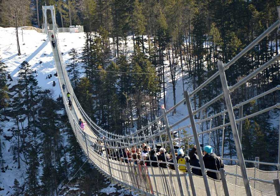 Das gigantische Projekt der Fußgängerhängebrücke "Highline179" in Ehrenberg bei Reutte mit ca. 406m Länge, verbindet die Ruine Ehrenberg mit dem Fort Claudia. Die Tickets für die Besichtigung erhalten Sie am Infocounter in Reutte oder direkt beim Brückenportal via Ticketautomaten. Link